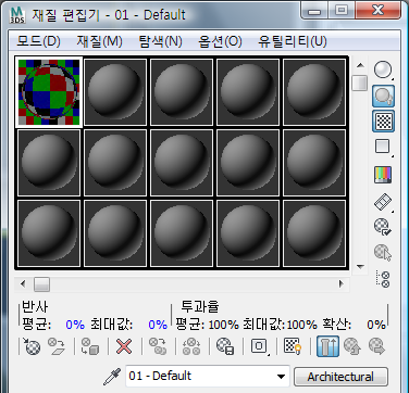 기본적으로 재질 편집기의 재질은 아키텍처 유형입니다. 이 재질을 표준 유형으로 변경합니다.