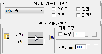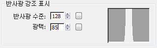 이러한 두 설정에 따라 광택 있는 강조 표시의 밝기 및 크기가 각각 결정됩니다.