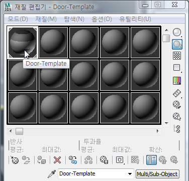 문 재질이 컴팩트 재질 편집기의 첫 번째 샘플 슬롯에 나타납니다.
