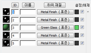 다음은 글레이징에 적용되는 재질입니다. 회전문의 유리가 뷰포트에서 초록색으로 바뀝니다.