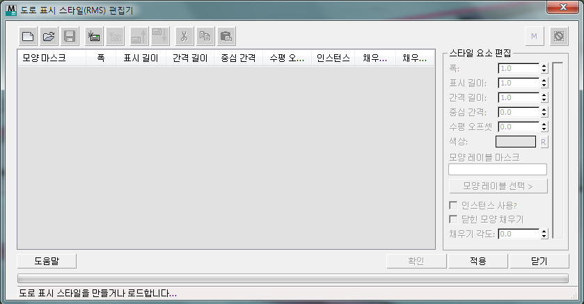 도로 표시 스타일 편집기를 선택합니다. 3ds Max Design에 RMS(도로 표시 스타일) 편집기 대화상자가 열립니다.