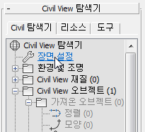 위쪽 패널(Civil View 탐색기 롤아웃)에서 장면 설정 항목을 클릭합니다.