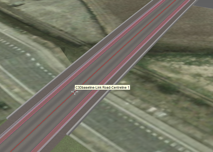 을 사용해 도로의 중심선 C3Dbaseline-Link Road-Centreline 1을 선택합니다.