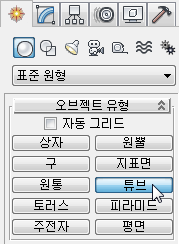 오브젝트 유형 롤아웃에서 튜브를 클릭합니다. 튜브 버튼이 강조 표시되어 활성화되었으며 사용 준비가 완료되었음을 나타냅니다.