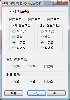 - 선택 사항 정렬(Cylinder01) 대화상자
