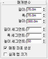 매개변수 롤아웃에서 다음과 같이 상자의 매개변수를 설정합니다.