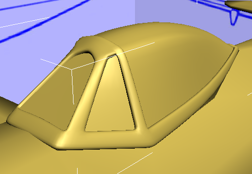 공기 흡입구 또는 조종석 내부의 전면 가장자리와 마찬가지로 NURMS 스무딩의 양을 줄이려면 인접한 가장자리 루프를 추가하여 가장자리를 보강합니다. 조종석 캐노피의 전면 방풍 유리에 대해 이 작업을 수행합니다.