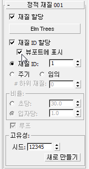 주: # 하위 재질 값이 1보다 크지 않으면 임의 옵션을 사용할 수 없으므로 느릅나무 재질을 연산자에 할당하기 전에는 이 설정을 선택할 수 없습니다.