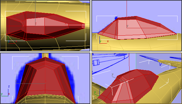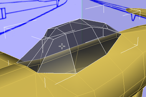 키를 누른 채 캐노피의 유리 부분에 해당하는 다각형을 클릭합니다. 투시 뷰에 표시되지 않는 다각형을 선택하려면 맨 위 뷰포트를 사용해야 합니다.