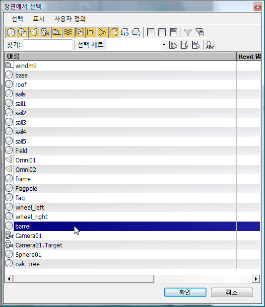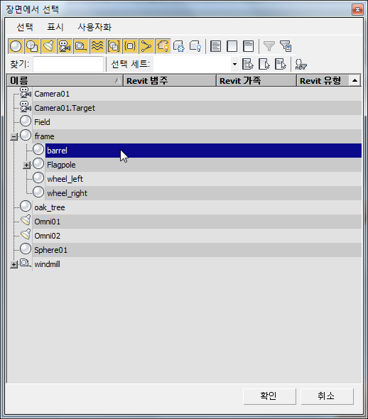 3ds Max에 장면에서 선택 대화상자가 열립니다.