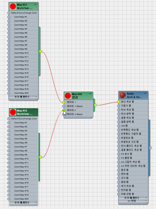 다중/하위 맵)을 활성 뷰로 드래그한 다음 새 다중/하위 맵을 합성 맵의 레이어 2 구성요소에 와이어링합니다.