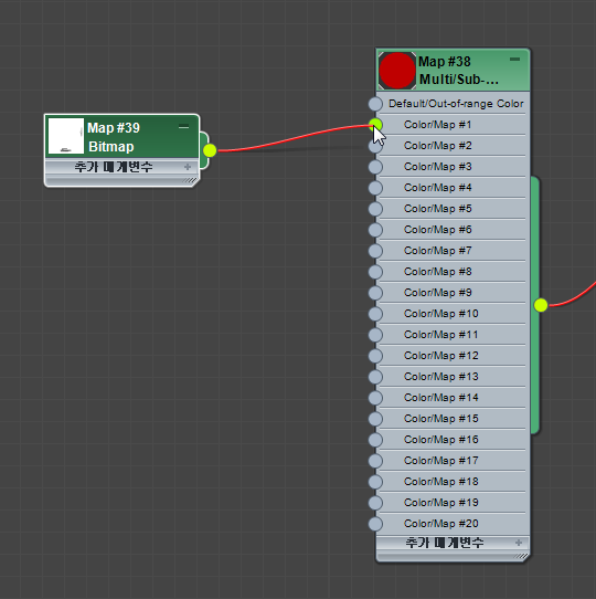 - 새 다중/하위 맵의 색상/맵 #1 구성요소에 새 비트맵 노드를 와이어링합니다.