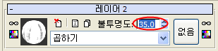 - 레이어 2 롤아웃에서 불투명도 설정을 35.0으로 변경합니다.
