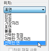 위치 그룹에서 위치 드롭다운 리스트를 열고 선택한 면을 선택합니다.