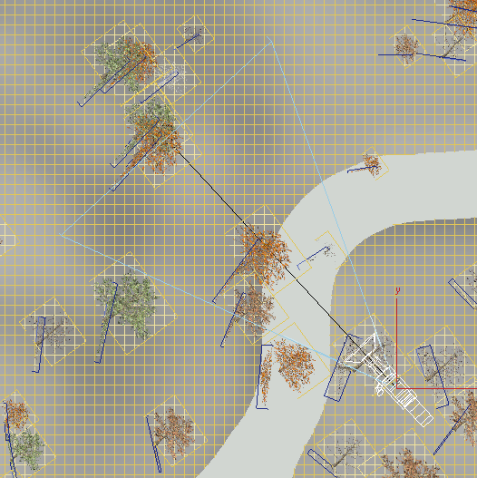 이제 다각형 선택을 사용하여 파티클 나무를 배치할 위치(강이나 근처가 아니라 뷰 필드 내의 위치)를 나타냅니다.
