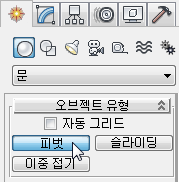 만들기 패널에서 드롭다운 리스트의 화살표를 클릭하고 문을 선택합니다. 오브젝트 유형 롤아웃에서 피벗을 클릭합니다.