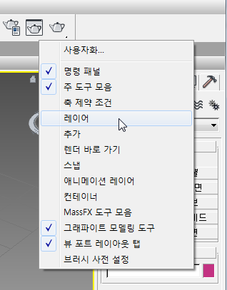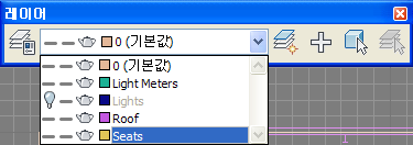 3ds Max에 레이어 도구 모음이 열립니다. 좌석이라는 레이어가 이미 만들어져 있습니다.