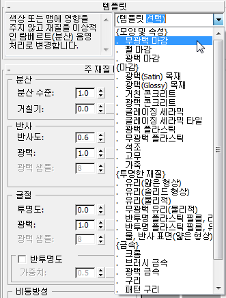 그러면 재질에 낮은 반사도가 지정됩니다.