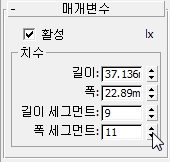 치수 그룹에서 길이 세그먼트를 9로, 폭 세그먼트를 11로 설정합니다.