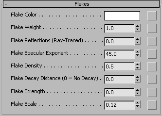 이 롤아웃을 사용하여 모든 자동차 페인트 매개변수에 맵이나 셰이더를 할당할 수 있습니다. 매개변수가 처음 나타나는 롤아웃에 맵과 셰이더를 할당할 수도 있습니다. 이 롤아웃의 중요한 특징은 맵을 제거하지 않고도 확인란을 사용하여 매개변수 셰이더를 토글할 수 있다는 것입니다.