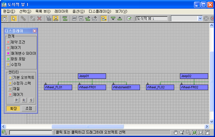 도식적 뷰 플로터 표시를 이용하여 보고 작업하고자 하는 엔티티와 관계를 제어할 수 있습니다. 도식적 뷰를 이용하여 다수의 오브젝트를 갖는 복잡한 계층이나 배경을 검색하십시오. 도식적 뷰를 이용하여 다른 사용자가 만든 파일의 구조를 이해하고 활용하십시오.