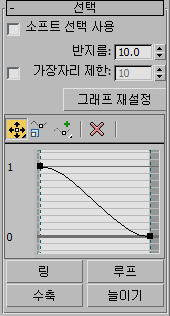 스킨 모프의 소프트 선택은 핀치 및 버블 설정 대신 직접 그래프 모양을 조정할 수 있으며 폴오프 대신 반지름 설정을 사용하여 소프트 선택 사항의 범위를 결정한다는 점을 제외하고 3ds Max의 다른 부분에서 소프트 선택과 매우 유사하게 작동합니다.