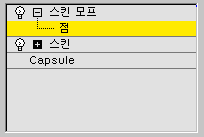 연결된 모든 골격과 해당 모프를 계층 보기에 나열합니다. 리스트에서 해당 이름 옆에 있는 + 또는 - 상자를 클릭하여 골격의 모프 리스트를 확장 또는 축소할 수 있습니다. 모프 이름 옆에 있는 괄호 안의 숫자는 현재 프레임에서 모프의 상대적인 영향력을 비율로 표시합니다.
