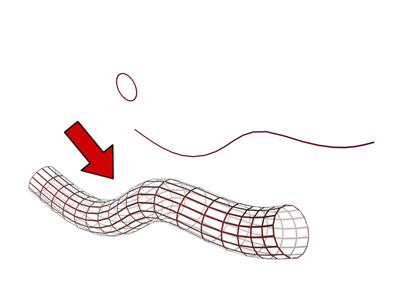 원은 경로를 따라 로프트되어 튜브 모양을 구성합니다.