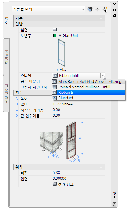 다음 과정에 따라 커튼월 단위에 대한 서로 다른 스타일을 선택하십시오.