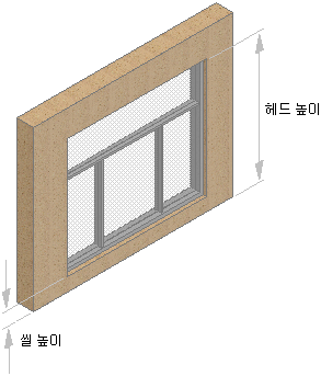 수직 정렬은 벽에 조합창/문을 배치하는 방법 및 높이를 수정할 경우 조합창/문에 미치는 영향을 조정합니다. 씰 높이 및 헤드 높이 옵션을 사용하여 조합창/문의 작업점을 결정할 수 있습니다. 씰이나 헤더에 작업점을 배치할 수도 있습니다. 수직 정렬 값은 작업점의 위치를 벽에서 수직으로 결정합니다.
