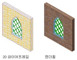 2D 와이어프레임 및 렌더된 뷰의 창