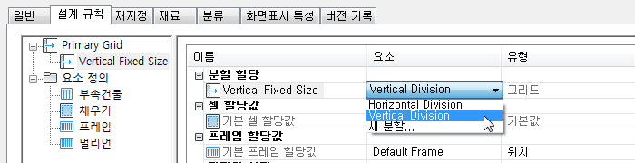 - 해당 그리드의 요소 열을 클릭하고 리스트에서 분할 정의를 선택합니다.