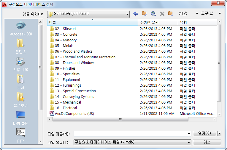 - 구성요소 데이터베이스 선택 대화상자에서 추가할 데이터베이스를 찾고 열기를 클릭합니다.