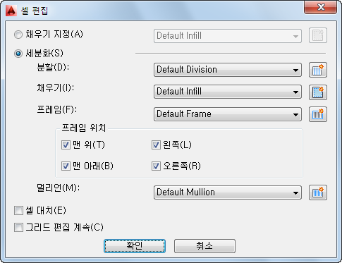 셀이 재분할된 후 작성된 그리드에 멀리언 정의 선택 | 멀리언 정의를 선택합니다. |