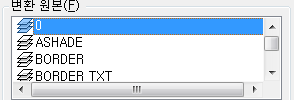 현재 도면의 도면층에서 변환할 수 있는 도면층을 나열합니다.