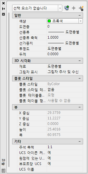 - 선택한 객체가 없는 경우 모든 새 객체에 사용할 현재 특성을 보고 변경할 수 있습니다.
