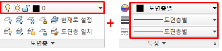 리본의 홈 탭에서 도면층 및 특성 패널을 사용하여 도면층, 색상, 선가중치 및 선종류와 같이 자주 액세스하는 특성에 대한 설정을 확인하거나 변경할 수 있습니다.