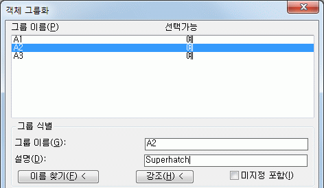 3) 그룹을 선택합니다. SUPERHATCH에 의해 작성된 그룹의 설명 필드에는 "superhatch"가 표시됩니다.