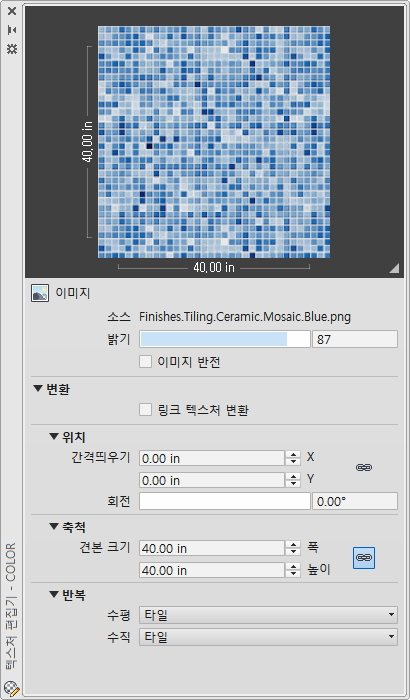 이미지 또는 절차 기반 텍스처의 특성을 편집합니다.