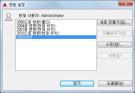 선택한 도면 변환에 대해 옵션을 지정할 수 있는 변환 설정 수정 대화상자를 표시합니다.