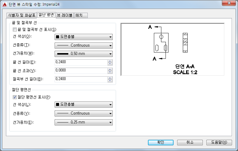- 절단 평면선 표시