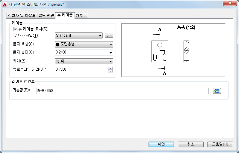 단면 뷰 레이블에 사용할 문자 스타일을 설정합니다.