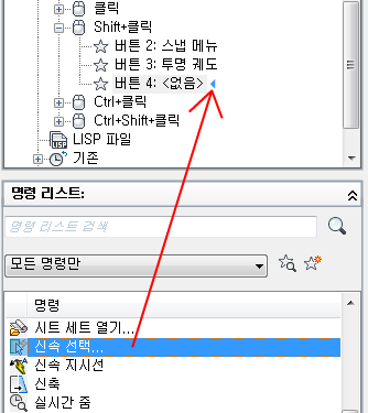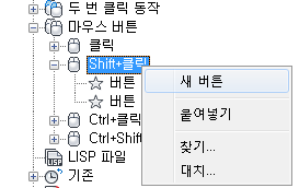 의 사용자화 창에서 마우스 버튼 노드 옆에 있는 더하기 기호(+)를 클릭하여 리스트를 확장합니다.