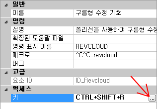 - 특성 창에서 키 상자를 클릭한 다음 […] 버튼을 클릭하여 바로 가기 키 대화상자를 엽니다.