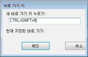 - 바로 가기 키 대화상자에서 수정자인 Ctrl 키와 Shift, Alt 키를 조합해서 누른 채로, 또는 Shift 키 및 Alt 키와 함께 원하는 문자, 숫자, 기능 키 또는 가상 키(예: F1 또는 Insert)를 누릅니다.
