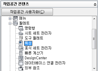 의 사용자화 창에서 작업공간을 확장하고 수정할 팔레트가 포함된 작업공간을 선택합니다.