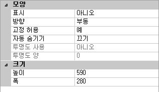 윈도우가 앵커될 것인지, 방향을 왼쪽, 오른쪽, 맨 위 또는 맨 아래로 설정할 것인지, 자동 숨기기를 켜기로 설정할 것인지를 지정하려면
