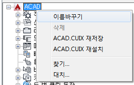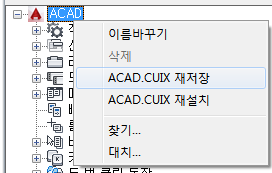 주: 재설정할 때는 프로그램 설치 위치 아래의 UserDataCache 폴더에 있는 CUIx 파일만 재설정할 수 있습니다.