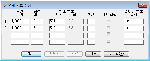 선 연계 번호 수정 대화상자에 도면의 래더 리스트가 표시됩니다.