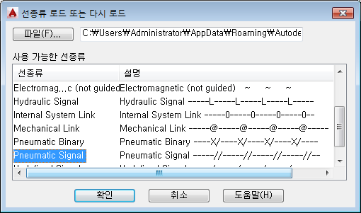 - 선종류 로드 또는 다시 로드 대화상자에서 Pneumatic Signal을 선택하고 확인을 클릭합니다.